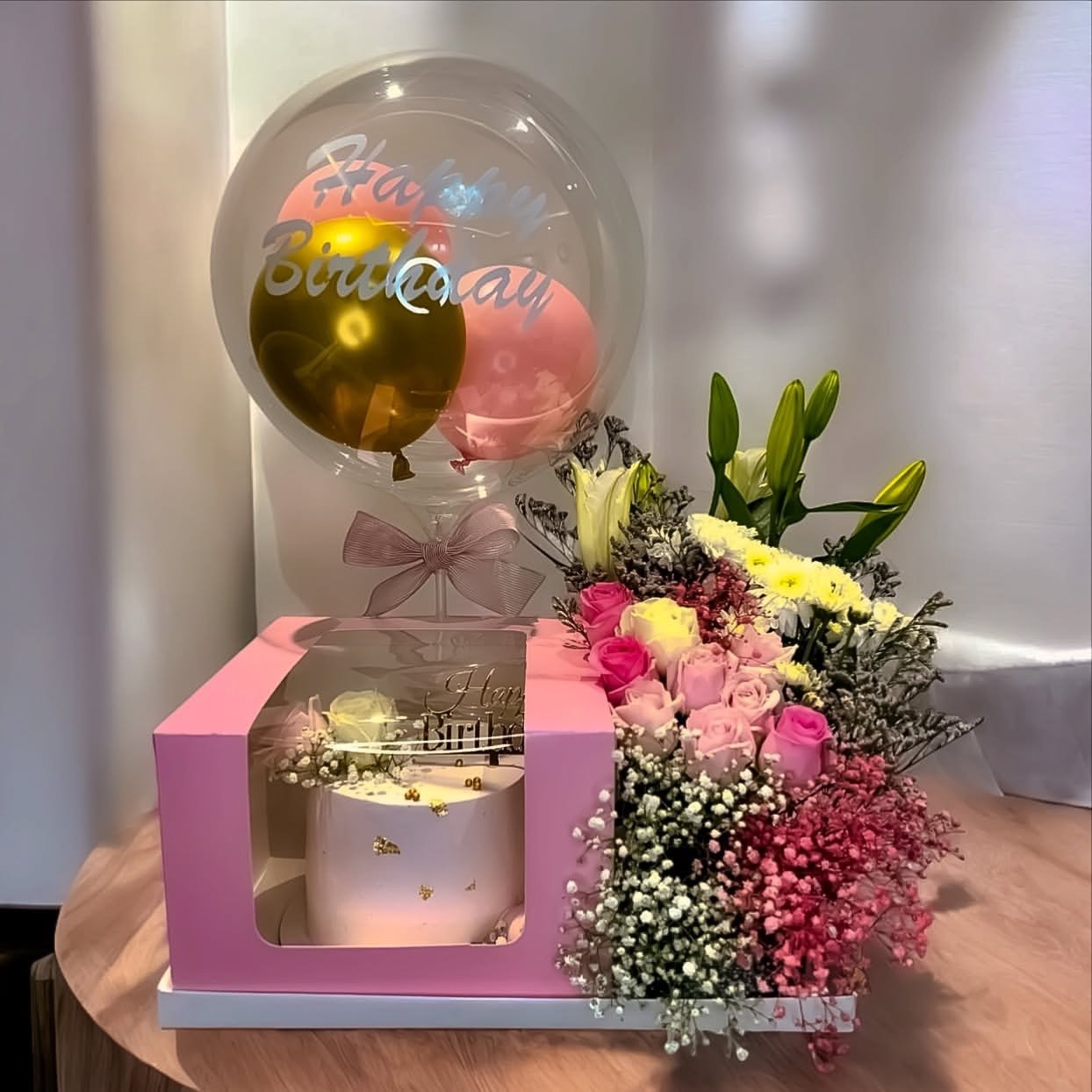 Pink themed luxury cake tray includes